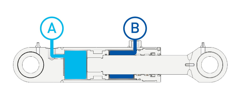 因此,氣缸的液壓能被轉(zhuǎn)換回機械運動。當(dāng)壓力到達腔室 A 時,桿推出,因此力推出 (F = px A1)。當(dāng)壓力進入腔室 B 時,雙作用氣缸中的反向運動,桿退回,力也退回 (F = px A2)